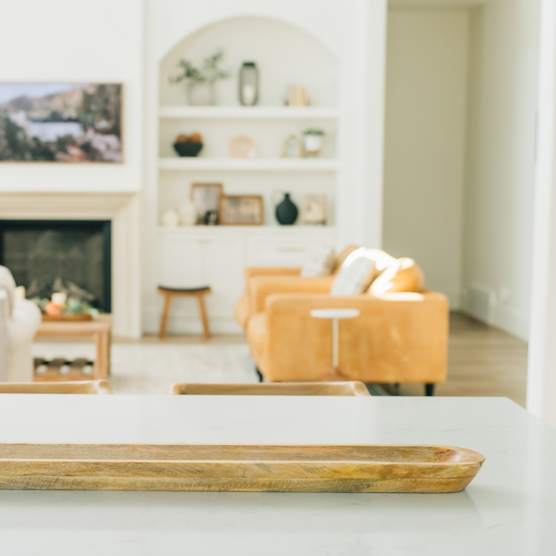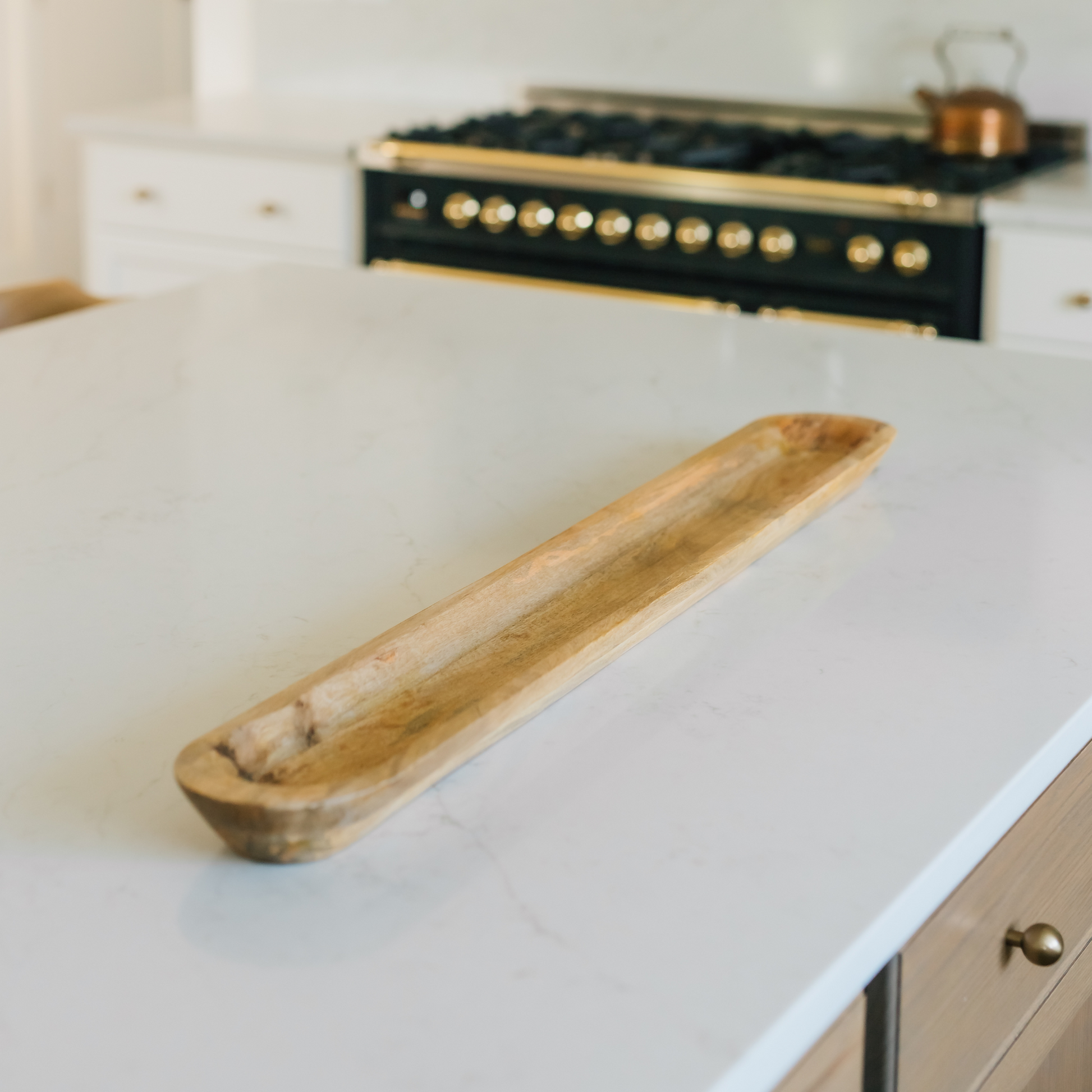 Sleek, natural, and versatile, the Arbor Accent Bowl is a 40×5.5 hand-carved mango wood centerpiece designed for narrow spaces. With its elongated profile and warm wood grain, this artisan-crafted bowl adds effortless texture and grounded style to any room.