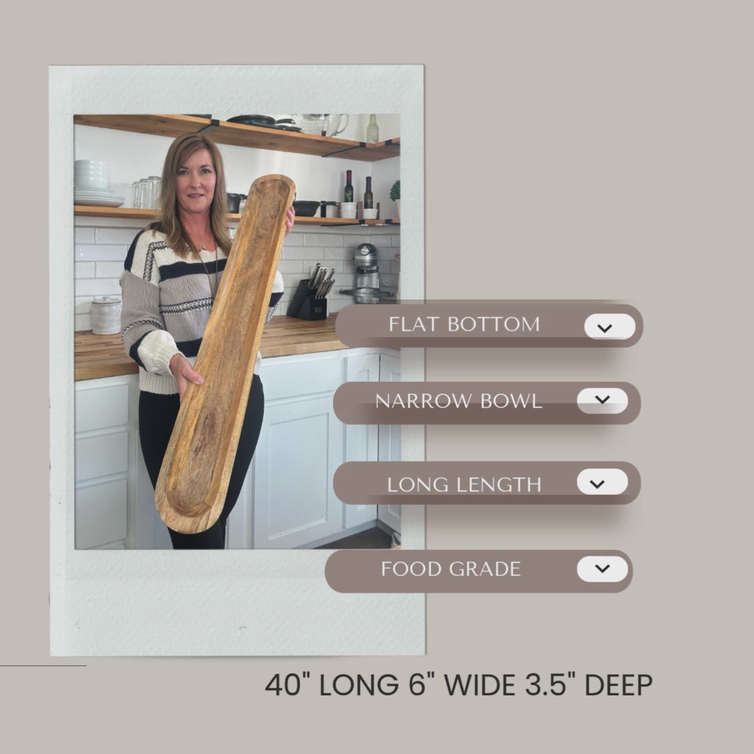 What sets this dough bowl apart is its breath taking gorgeous finish that seamlessly complements any home aesthetic. It is narrow for small spaces yet long enough to make a statement. The rich light tones sophistication, ensuring that this hand-carved masterpiece becomes an integral part of your decor, modern minimalism, or classic elegance.