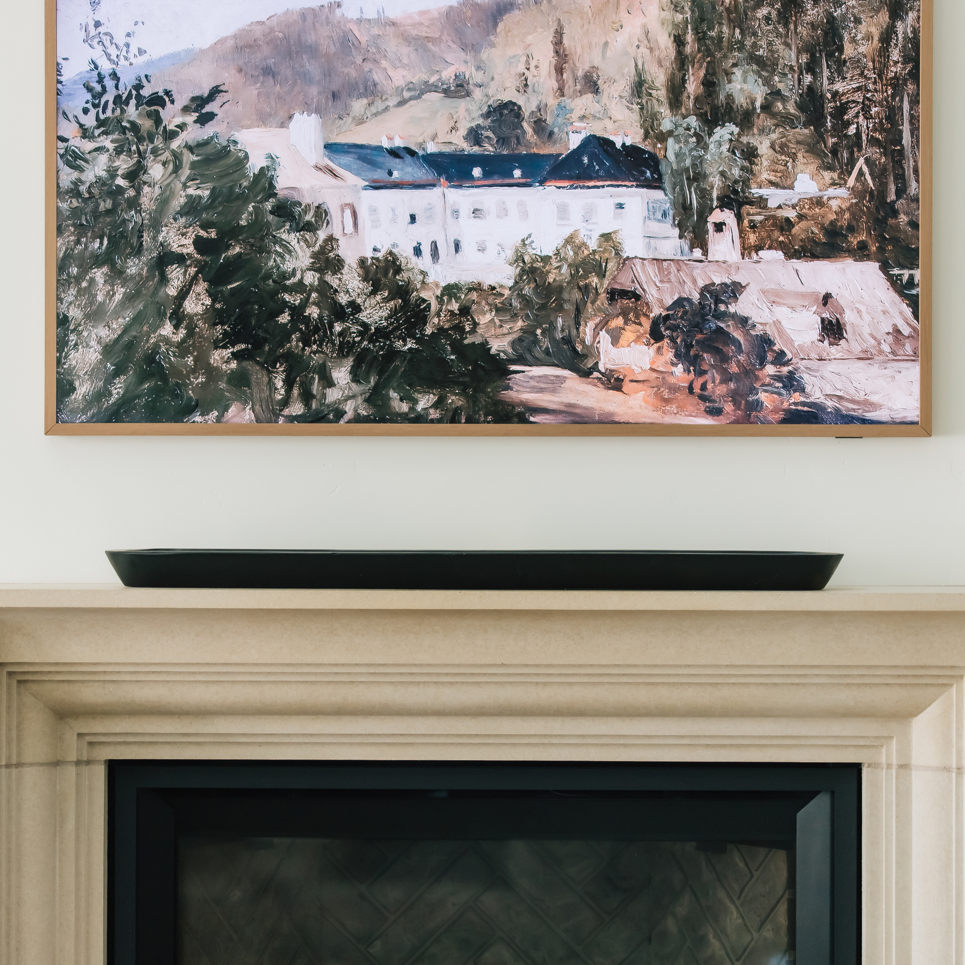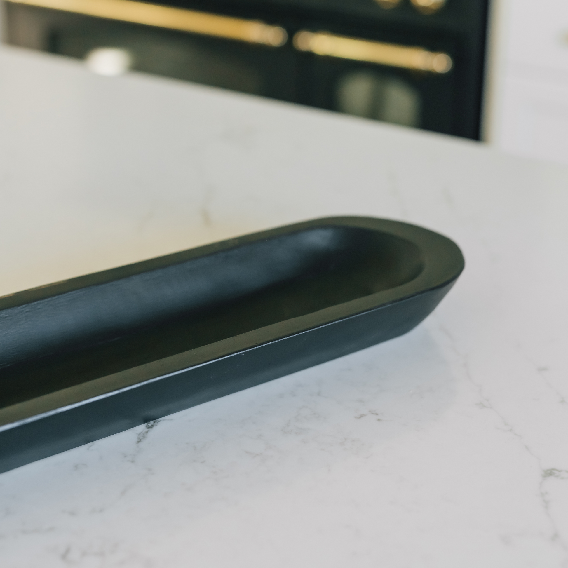 Bold and refined, the Obsidian Accent Bowl is a 40×5.5 hand-carved mango wood centerpiece finished in a rich black. Its elongated, slim profile makes it a striking addition to fireplace mantels, console tables, and modern shelf displays.