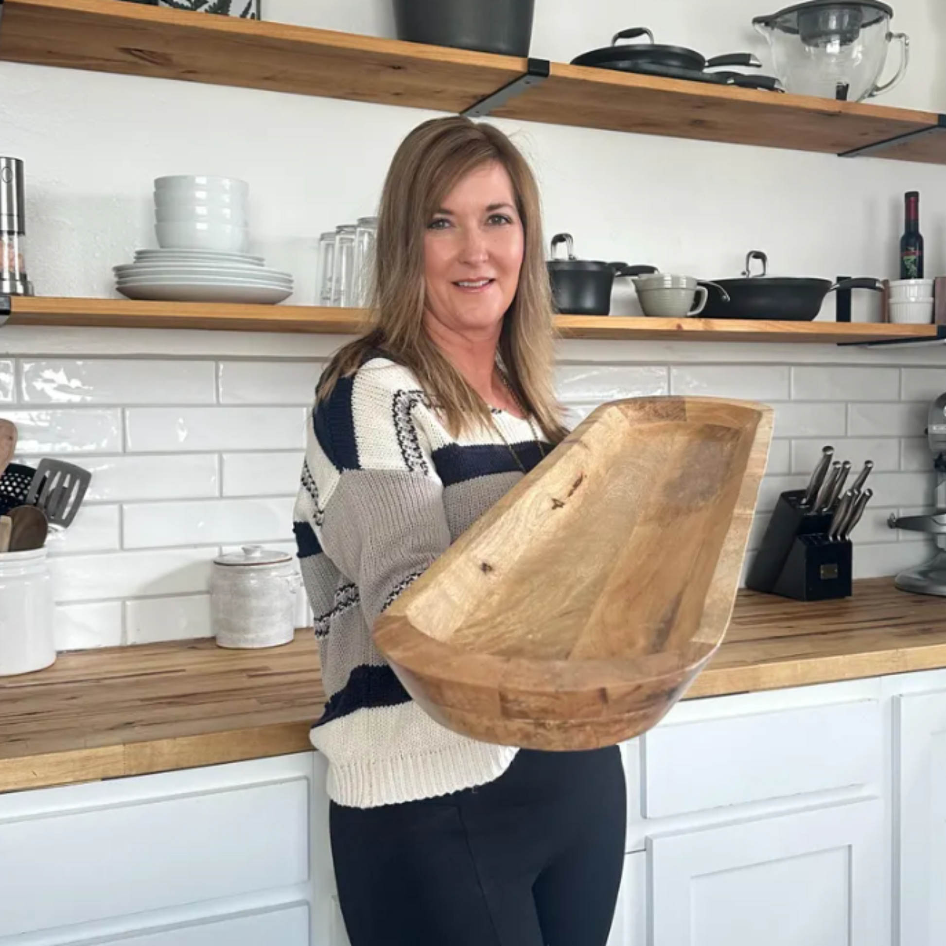 With its elongated form, this bowl is perfectly proportioned for dining tables, kitchen counters, or console displays. The earthy tones of mango wood pair seamlessly with the lush green moss, creating a centerpiece that feels both modern and grounded.